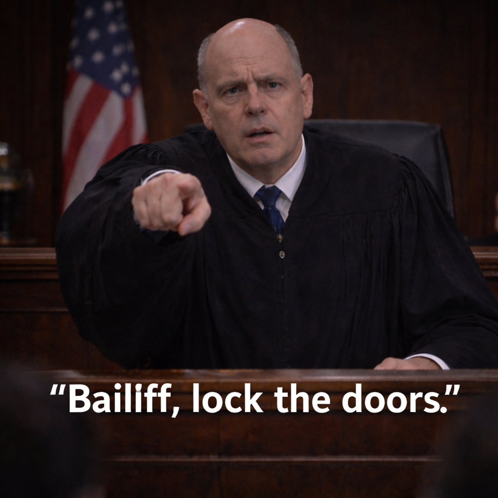 The sound of the words seemed louder than they were. The bailiff moved immediately. Heavy courtroom doors closed with a solid echo.