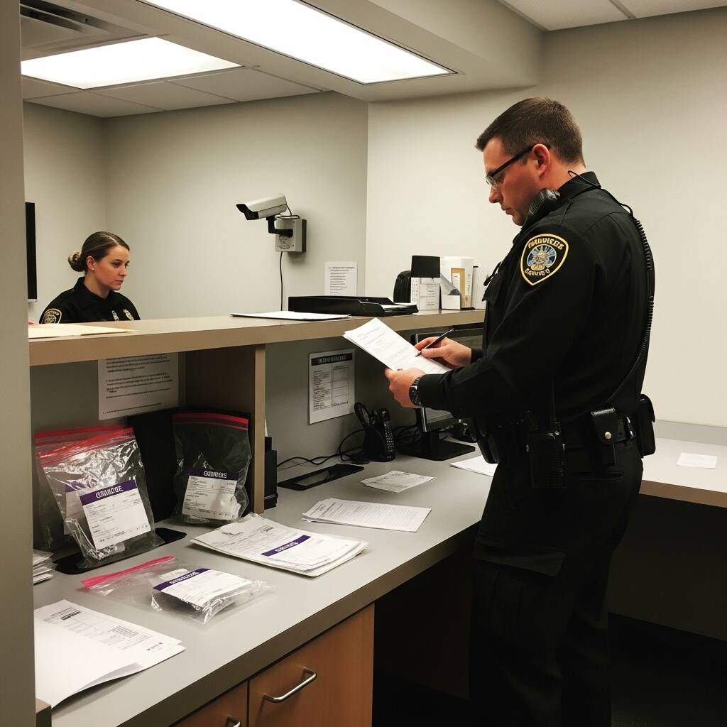 The officer replied, “In the evidence drawer until transfer to central property.”