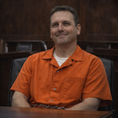 Across the room, the defendant waited in chains.